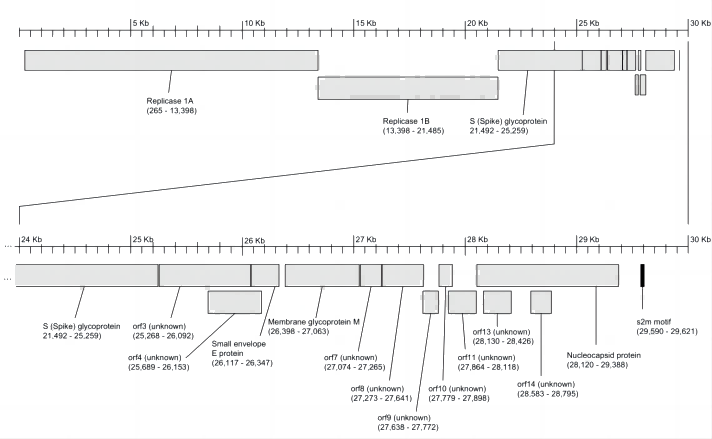 Severe acute respiratory syndrome (SARS)于2003年二月在亞洲第一次被報道,繼而傳播到全球十幾個國家,SARS屬于一種冠狀病毒,是一類具有囊膜、基因組為線性單股正鏈的RNA病毒,對應(yīng)的結(jié)構(gòu)示意圖如下: