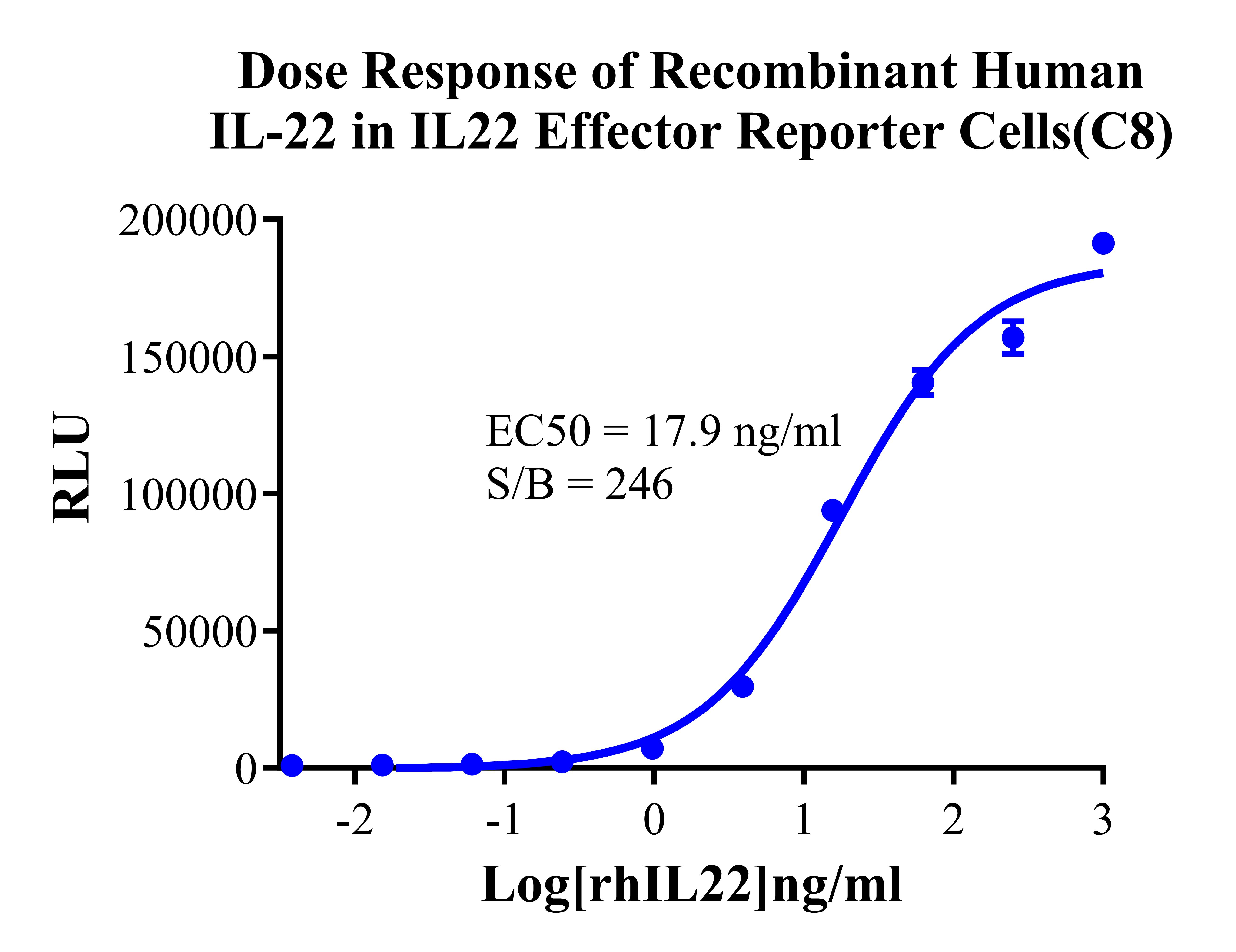 Figure 4.Dose Response of Recombinant Human IL-22 in Human IL22 Effector Reporter Cells(C8). |