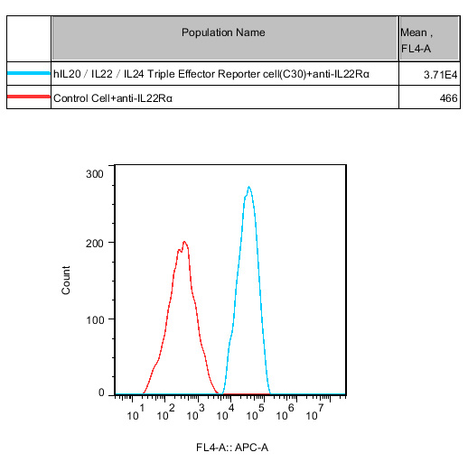 Figure 2. Recombinant hIL20/IL22/IL24 Triple Effector Reporter Cell stably expressing IL22Rα.