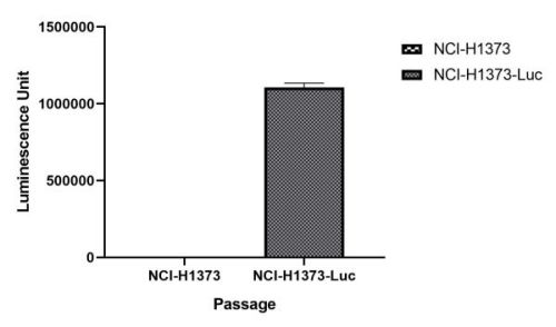 Figure. Stablity test results. NCI-H1373-Luc cells showed at least 32 passage stability with similar luminescence unit. |