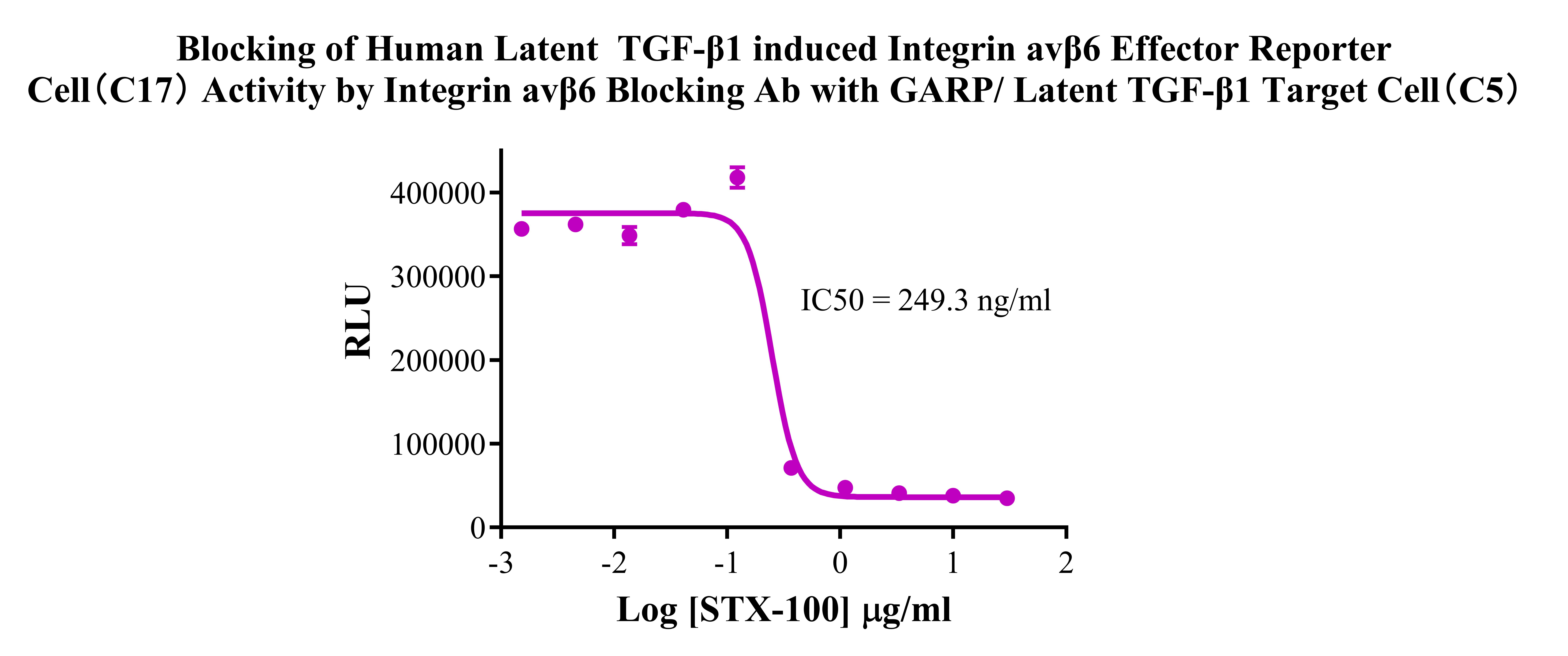 Figure 6.Blocking of Human Latent TGF-β1 induced Integrin avβ6 Effector Reporter Cell(C17) Activity by GARP/TGF-β1 Blocking Ab with GARP/Latent TGF-β1 Target Cell(C5).