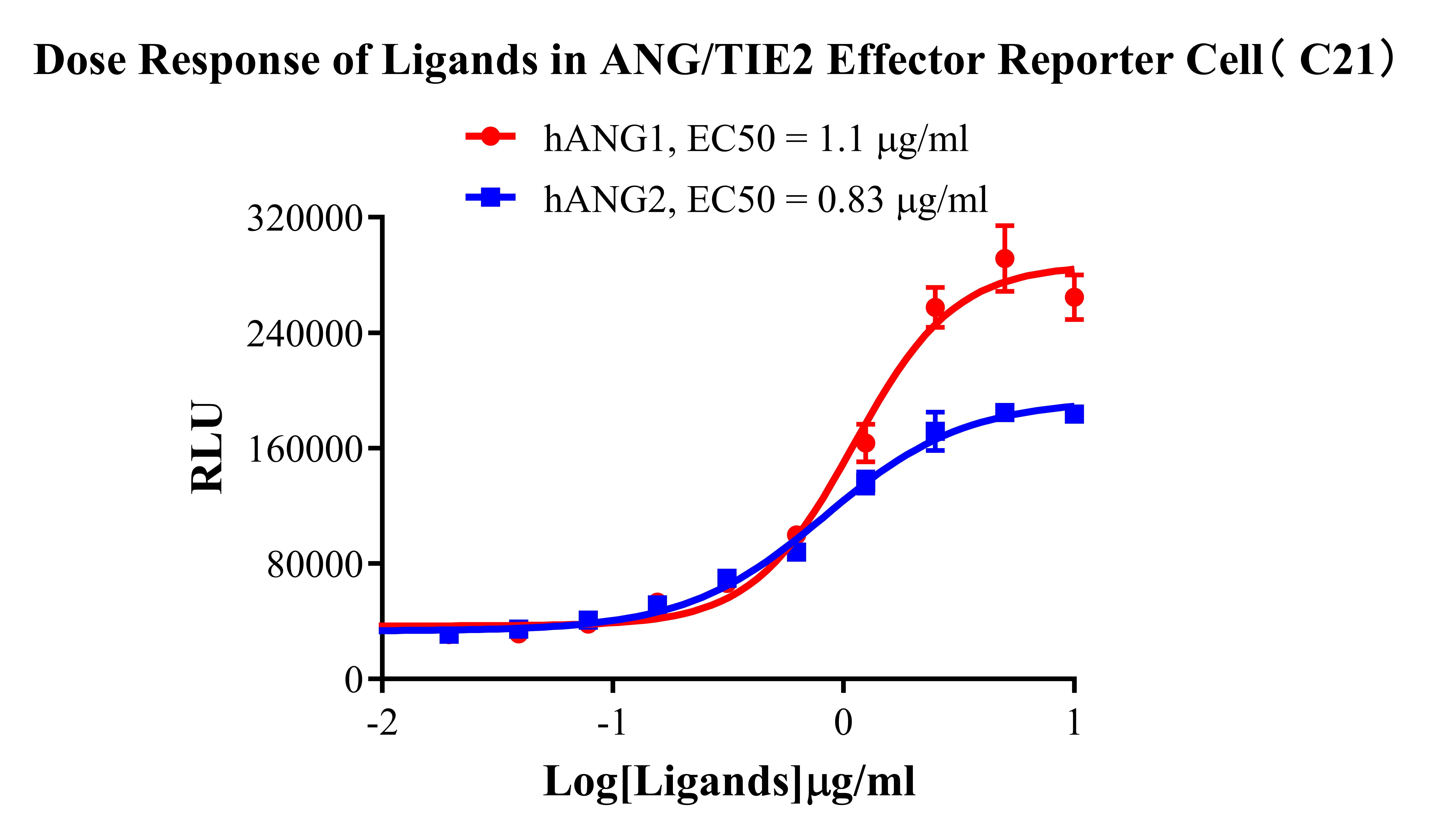 ANG/TIE2 Effector Reporter Cell 報告基因藥靶模型很好的模擬了體內(nèi) ANG/TIE2 的信 號轉(zhuǎn)導(dǎo)過程,原理見下圖所示。![]() Figure 1. ANG/TIE2 Effector Reporter Cell 細(xì)胞模型原理圖