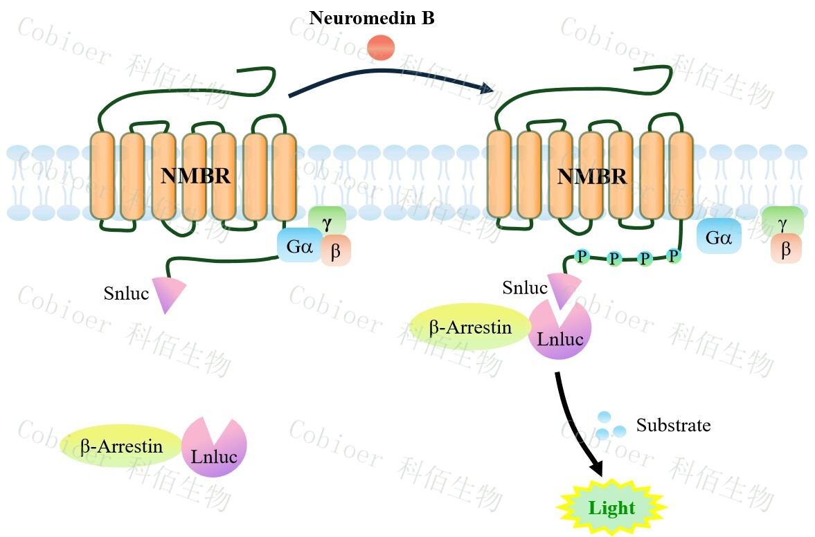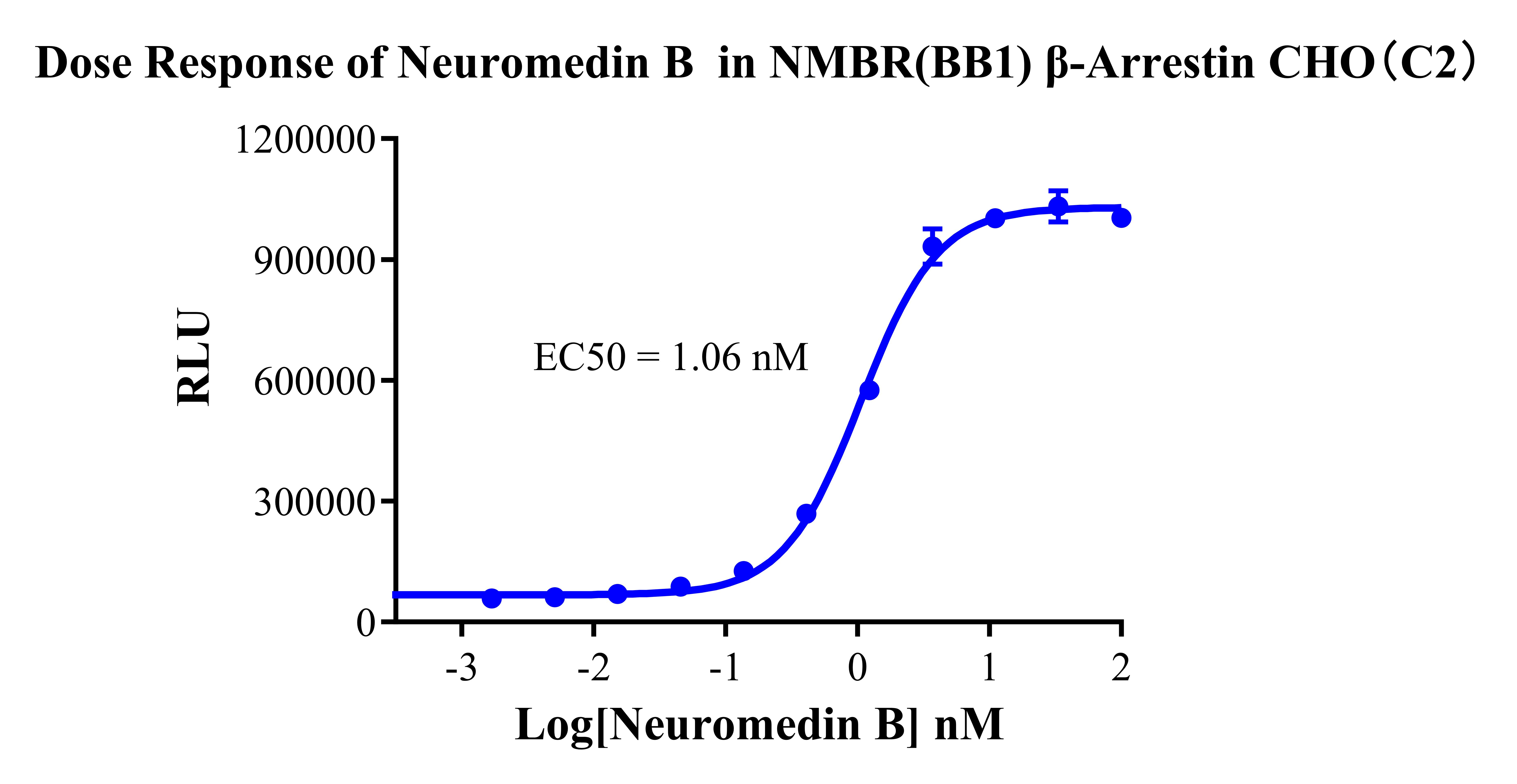 NMBR(BB1) β-Arrestin CHO 報(bào)告基因藥靶模型很好的模擬了體內(nèi) NMBR/β-Arrestin 的信號(hào)轉(zhuǎn)導(dǎo)過程,原理見下圖所示。當(dāng)缺乏配體刺激時(shí),β-Arrestin 不與 NMBR 結(jié)合,融合β- Arrestin 的熒光素酶處于失活構(gòu)象,當(dāng) NMBR 遭遇配體刺激時(shí),融合熒光素酶報(bào)告基因的 β-Arrestin 被招募,使熒光素酶報(bào)告基因處于激活狀態(tài),加入其底物后發(fā)光信號(hào)增強(qiáng)。![]() Figure 1. NMBR(BB1) β-Arrestin CHO 細(xì)胞模型原理圖 |
