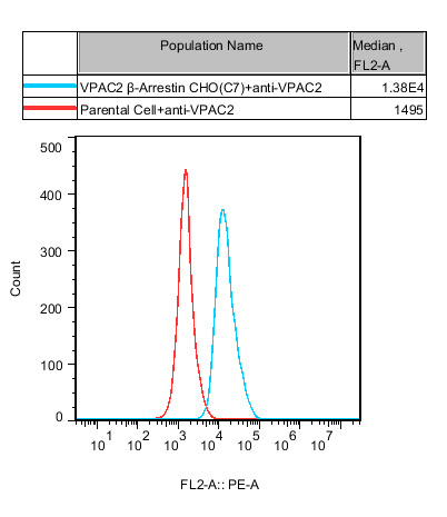 VPAC2 β-Arrestin CHO 報(bào)告基因藥靶模型很好的模擬了體內(nèi) VPAC2/β-Arrestin 的信號(hào)轉(zhuǎn)導(dǎo)過程,原理見下圖所示。當(dāng)缺乏配體刺激時(shí),β-Arrestin 不與 VPAC2 結(jié)合,融合β- Arrestin 的熒光素酶處于失活構(gòu)象,當(dāng) VPAC2 遭遇配體刺激時(shí),融合熒光素酶報(bào)告基因的 β-Arrestin 被招募,使熒光素酶報(bào)告基因處于激活狀態(tài),加入其底物后發(fā)光信號(hào)增強(qiáng)。![]() Figure 1. VPAC2 β-Arrestin CHO 細(xì)胞模型原理圖 |