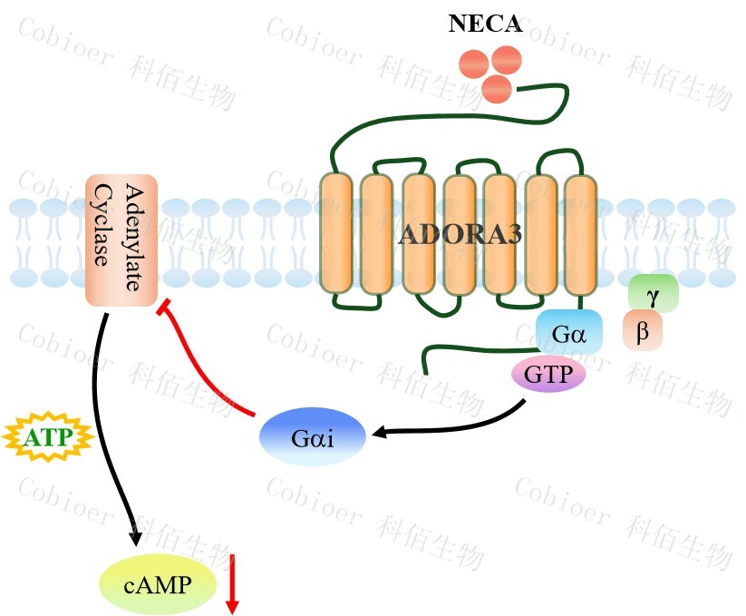 cAMP 在 G 蛋白偶聯(lián)受體(GPCR)信號(hào)轉(zhuǎn)導(dǎo)中是一種關(guān)鍵的第二信使。當(dāng)配體結(jié)合到 GPCR,構(gòu)象發(fā)生變化,激活受體接著激活 G 蛋白,Gi 的激活導(dǎo)致腺苷酸環(huán)化酶調(diào)控 cAMP 的下調(diào)。