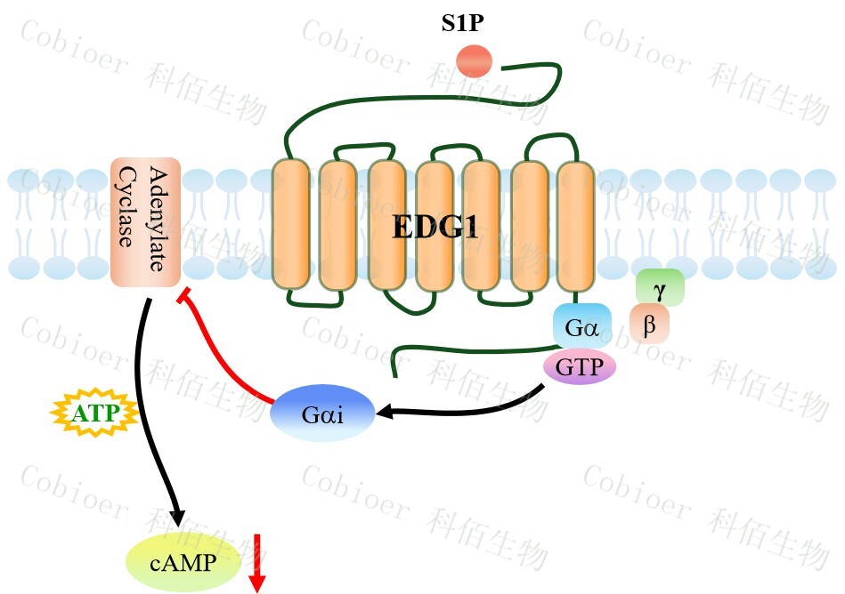 cAMP 在 G 蛋白偶聯(lián)受體(GPCR)信號轉(zhuǎn)導中是一種關(guān)鍵的第二信使。當配體結(jié)合 到 GPCR,構(gòu)象發(fā)生變化,激活受體接著激活 G 蛋白,Gi 的激活導致腺苷酸環(huán)化酶調(diào)控 cAMP 的下調(diào)。EDG1(S1P1) CHO 藥靶模型很好的模擬了體內(nèi) EDG1(S1P1)的信號轉(zhuǎn)導過程, 原理見下圖所示。![]() Figure 1. EDG1(S1P1) CHO 細胞模型原理圖