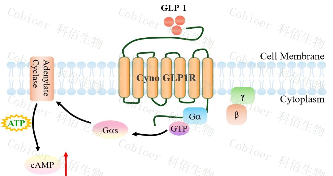 GLP1R 藥靶模型很好的模擬了體內(nèi) GLP1R 的信號轉(zhuǎn)導(dǎo)過程,原理見下圖所示。 ![]() Figure 1. Cyno GLP1R CHO 細(xì)胞模型原理圖