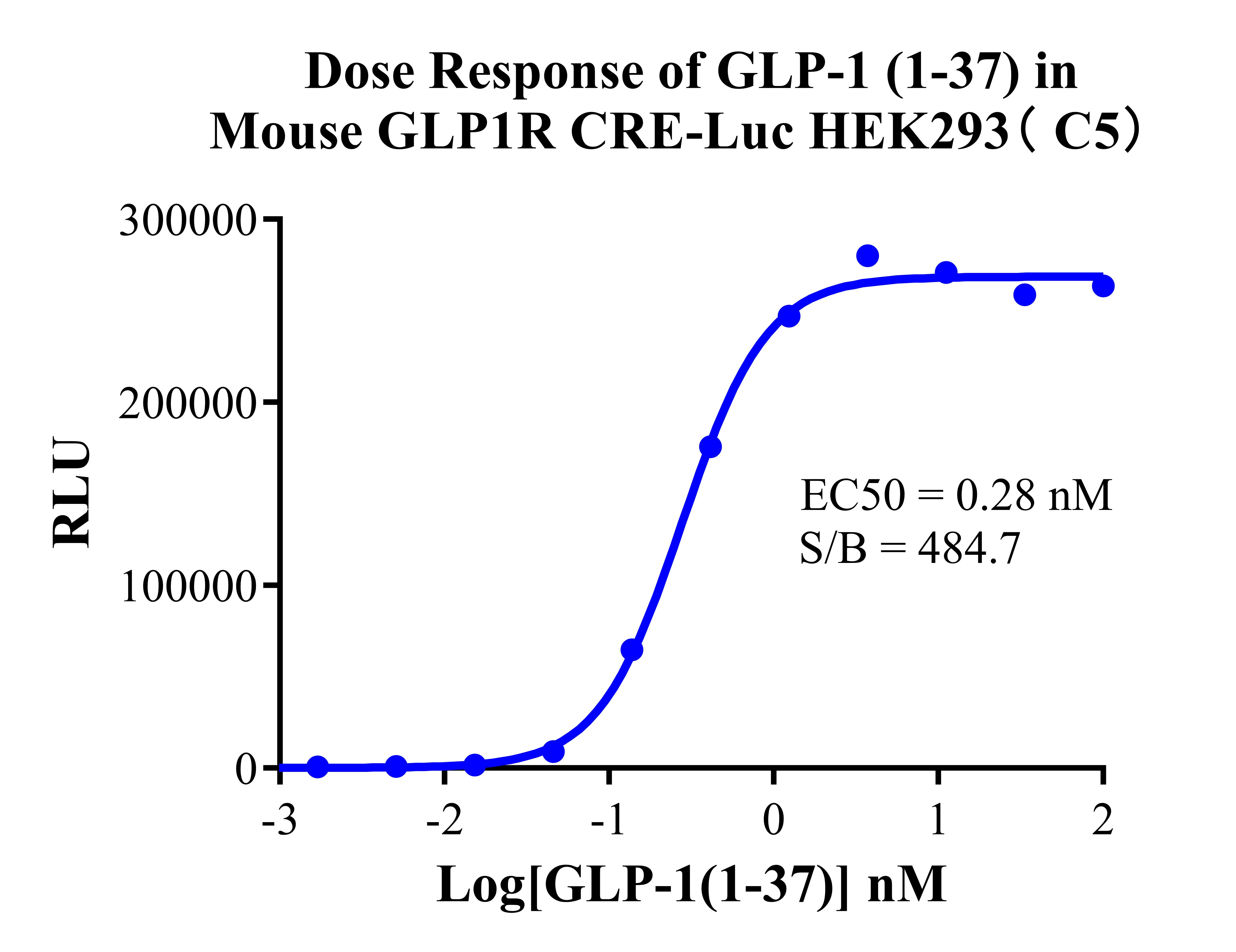Figure 2. Dose response of GLP-1 (1-37) in Mouse GLP1R CRE-Luc HEK293 (C5). |