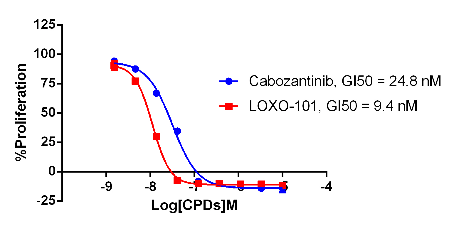 Figure 3. Anti-proliferation assay of two reference compounds on the LMNA-NTRK1/BaF3 Stable Cell Line |