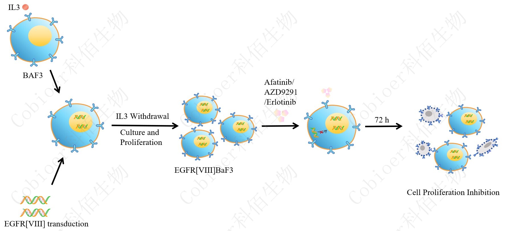 BaF3(小鼠原 B 細(xì)胞)的生長(zhǎng)和增殖需要 IL-3 的維持。通過引入各種表達(dá)激酶的基因, 能作為 BaF3 的驅(qū)動(dòng)基因,讓 BaF3 不再依賴 IL-3 而增殖,進(jìn)而激酶基因成為 BaF3 增殖依 賴的驅(qū)動(dòng)基因,用于評(píng)估小分子藥物對(duì)激酶的靶向抑制作用,原理及流程見下圖所示。