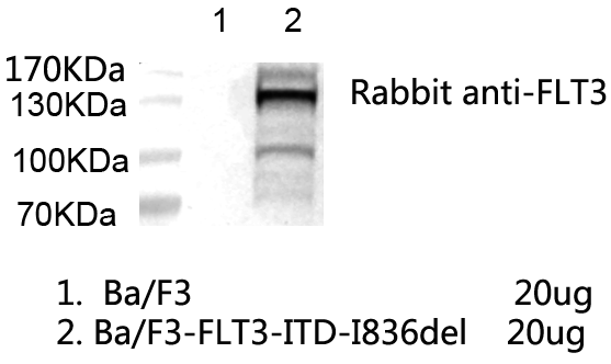 FLT3, receptor-type tyrosine-protein kinase FLT3, activates Akt, Ras, and Erk pathways to regulate differentiation, proliferation, and survival of hematopoietic progenitor cells (PMID: 29316714, PMID: 28538663). Activating mutations of FLT3 are common in hematologic tumors (PMID: 19467916) and the internal tandem duplication (ITD) mutation is commonly observed in acute myeloid leukemia (PMID: 30181385). |