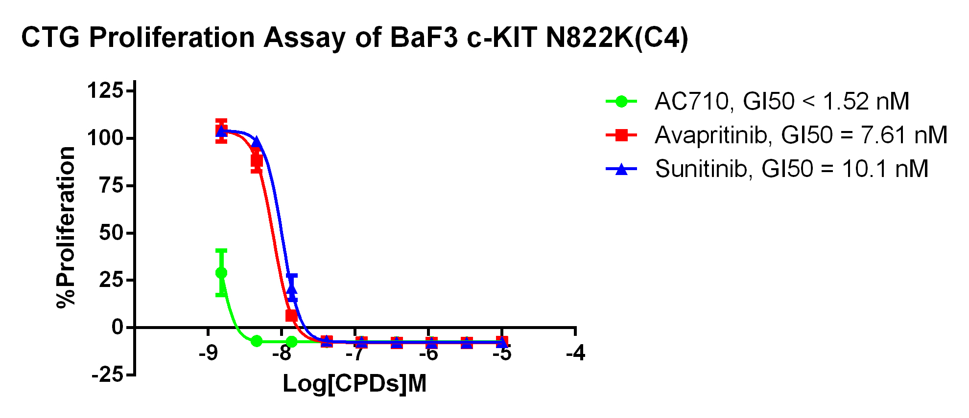 Figure 3. CTG Proliferation Assay of BaF3 c-KIT N822K(C4). |