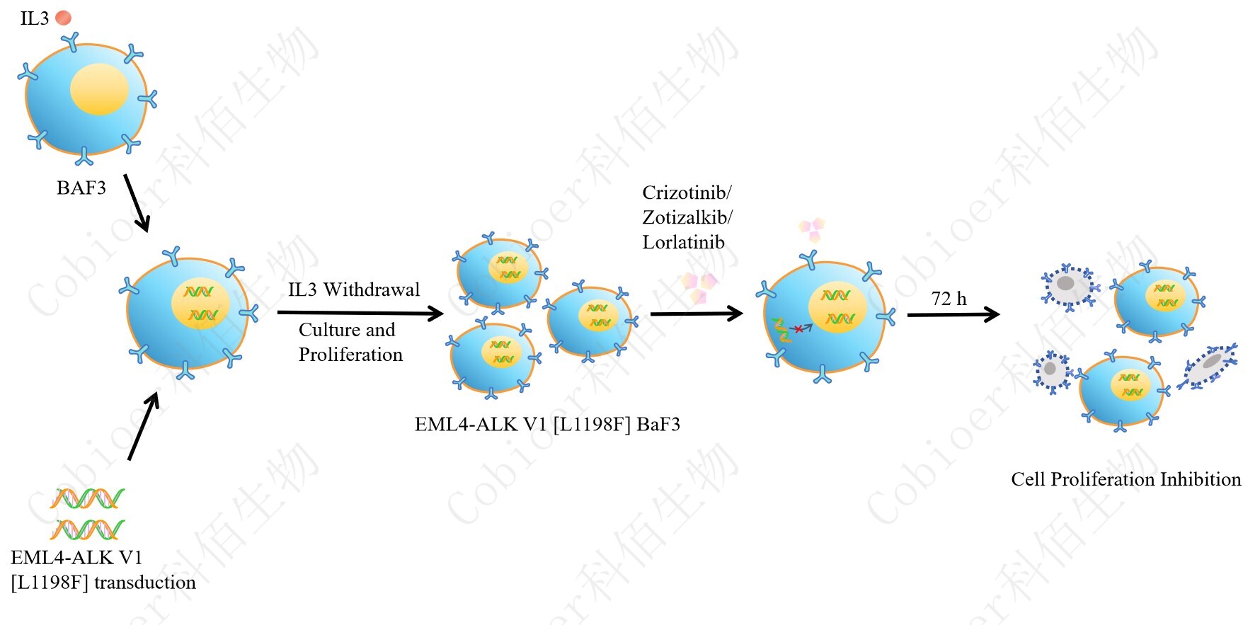 BaF3(小鼠原 B 細(xì)胞)的生長和增殖需要 IL-3 的維持。通過引入各種表達(dá)激酶的基因, 能作為 BaF3 的驅(qū)動基因,讓 BaF3 不再依賴 IL-3 而增殖,進(jìn)而激酶基因成為 BaF3 增殖依 賴的驅(qū)動基因,用于評估小分子藥物對激酶的靶向抑制作用,原理及流程見下圖所示。