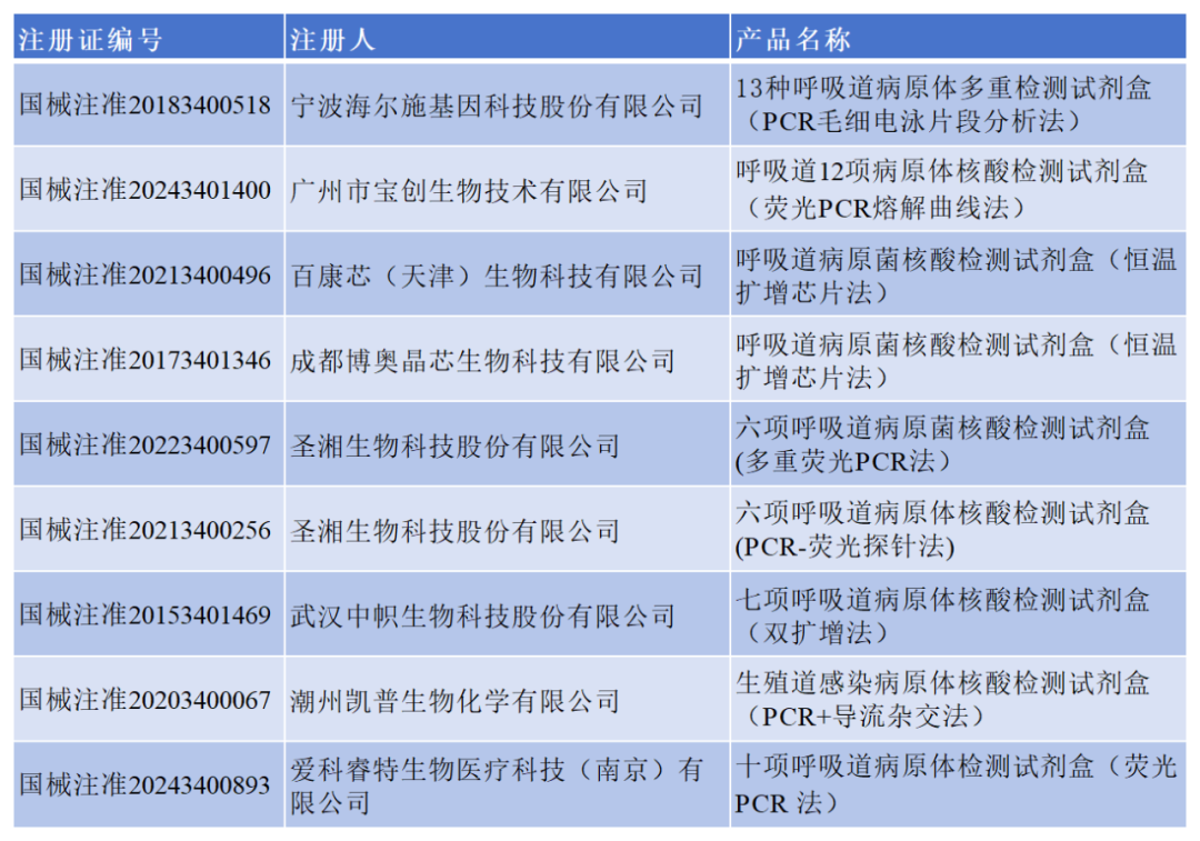 截止目前,獲證的病原檢測(cè)的試劑盒已有幾百種,部分列舉如下: