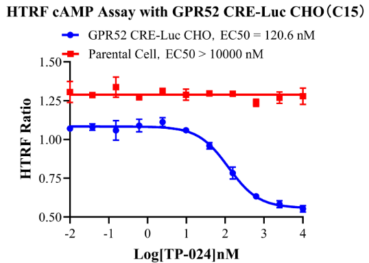 Figure 5. HTRF cAMP Assay with GPR52 CRE-Luc CHO(C15).