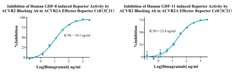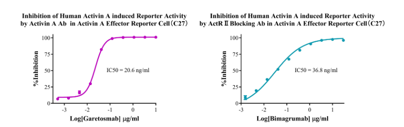 為助力ActRⅡ靶點藥物研發(fā),南京科佰開發(fā)了Activin A Effector Reporter Cell、ACVR2A CHO、ACVR2A Effector Reporter Cell、ACVR2B CHO和ACVR2B Effector Reporter Cell細胞篩選模型,部分數據展示如下: