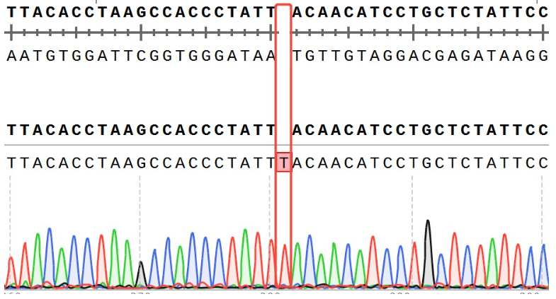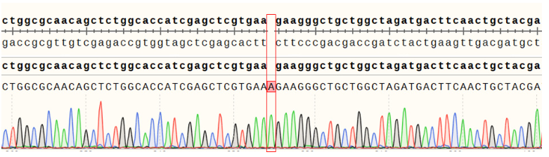 Figure 12.  ACVR2B Effector Reporter Cell 測序結果 ACVR2A(NM_001616.5): c.409_410insT/ ACVR2A:p.Y137Lfs*76