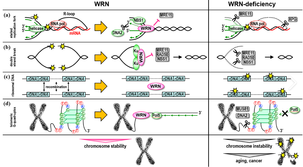 WRN(Werner Helicase)是一種具有解旋酶和核酸外切酶活性的多功能酶,在維持基因組穩(wěn)定性至關(guān)重要的各種細(xì)胞過程中發(fā)揮作用,包括 DNA 復(fù)制、轉(zhuǎn)錄、DNA 修復(fù)和端粒維護(hù)。