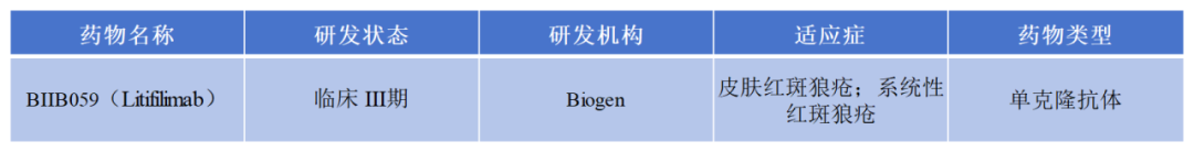 目前,全球關(guān)于BDCA-2這個(gè)靶點(diǎn)的在研管線并沒(méi)有很多,進(jìn)展最快的是渤健生物開(kāi)發(fā)的BDCA-2單抗BIIB059(Litifilimab),通過(guò)抑制BDCA-2,減少I(mǎi)FN-I等炎性細(xì)胞因子的產(chǎn)生,從而達(dá)到治療紅斑狼瘡的目的。