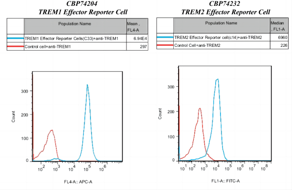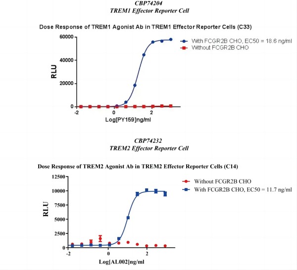 Figure 3. Response of agonist Ab in TREM1 Effector Reporter Cell or TREM2 Effector Reporter Cell.