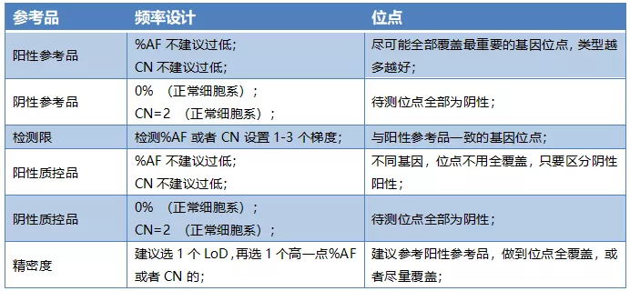 2.陽性參考品設(shè)置最為復(fù)雜,著重聚焦臨床意義的基因位點(diǎn),不要求全覆蓋,同時(shí)要考慮靈敏度(最低檢出限LoD)設(shè)置,考慮到濃度梯度或突變梯度的不同,應(yīng)對(duì)各水平陽性參考品設(shè)置相應(yīng)檢出要求;